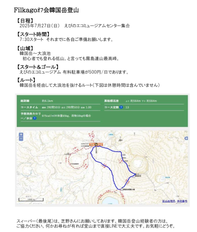 27日(日) 韓国岳登山会(オフ会)